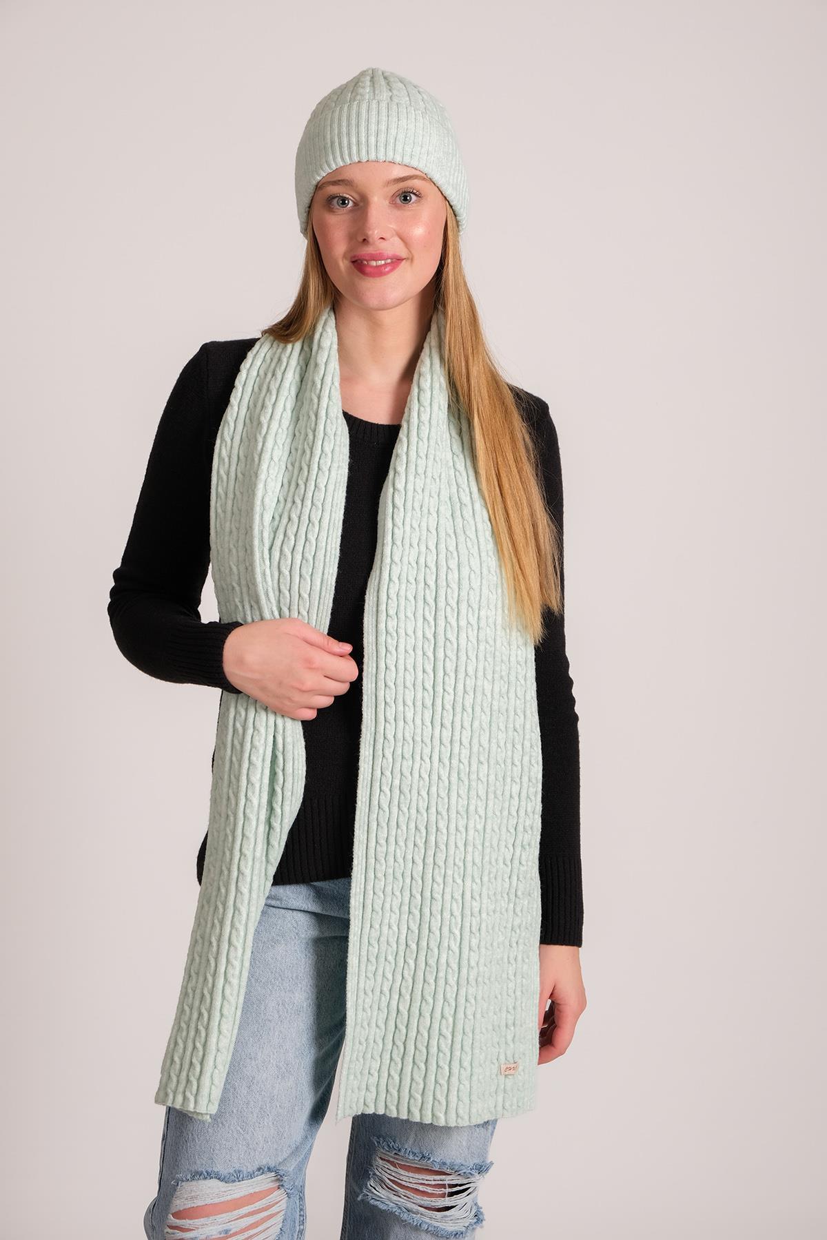 Chuba Kadın Saç Örgü Yumuşak Tuşe Atkı Bere Takımı Mint 23W503