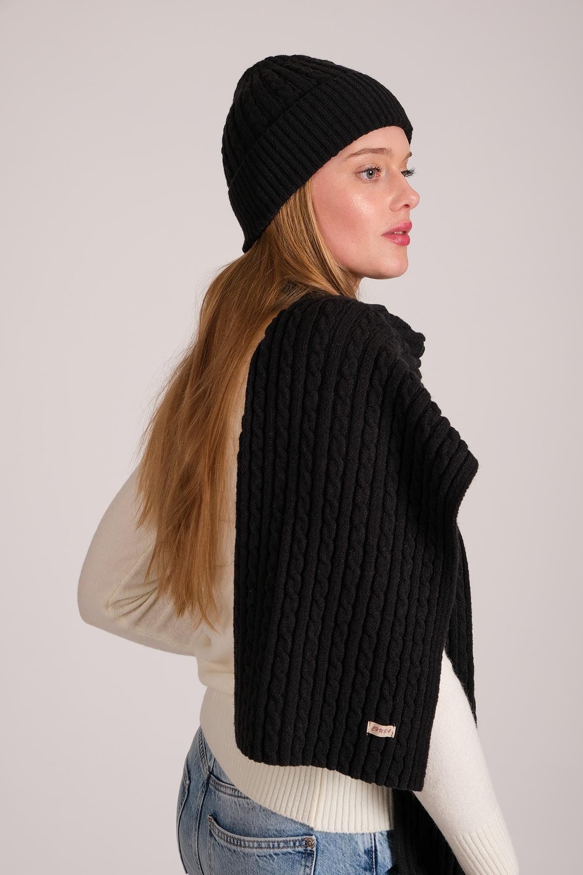 Chuba Kadın Saç Örgü Yumuşak Tuşe Atkı Bere Takımı Siyah 23W503
