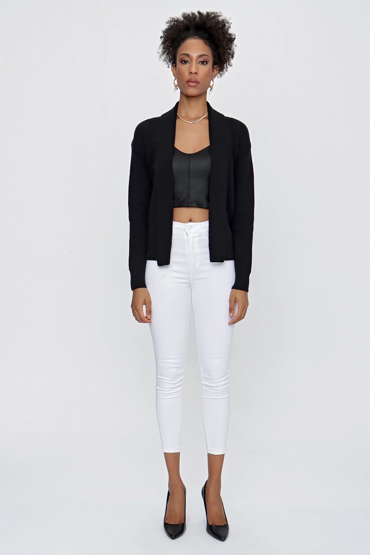 CHUBA Kadın Şal Yaka Melanj Triko Hırka Siyah 23W319