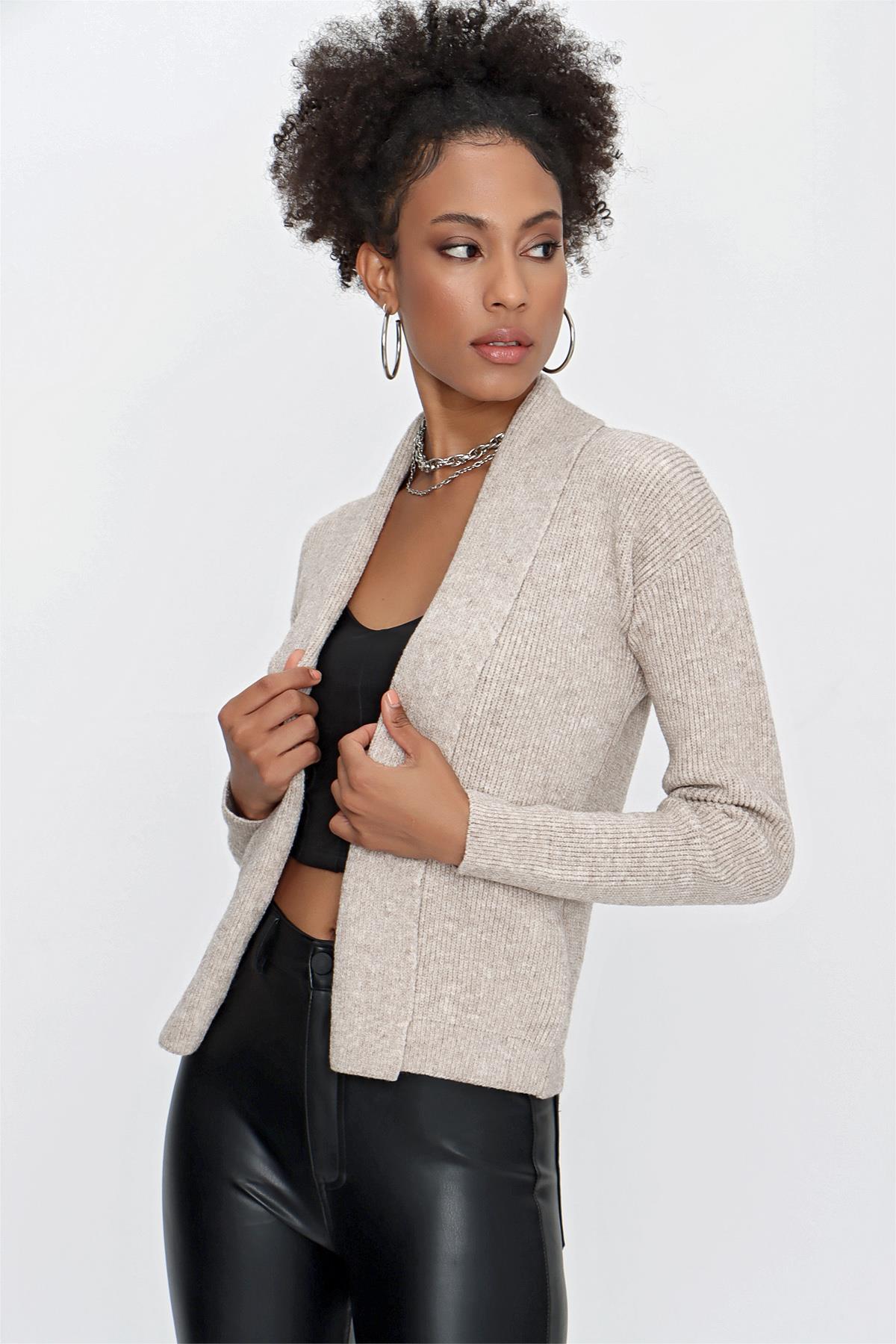 CHUBA Kadın Şal Yaka Melanj Triko Hırka Vizon 23W319