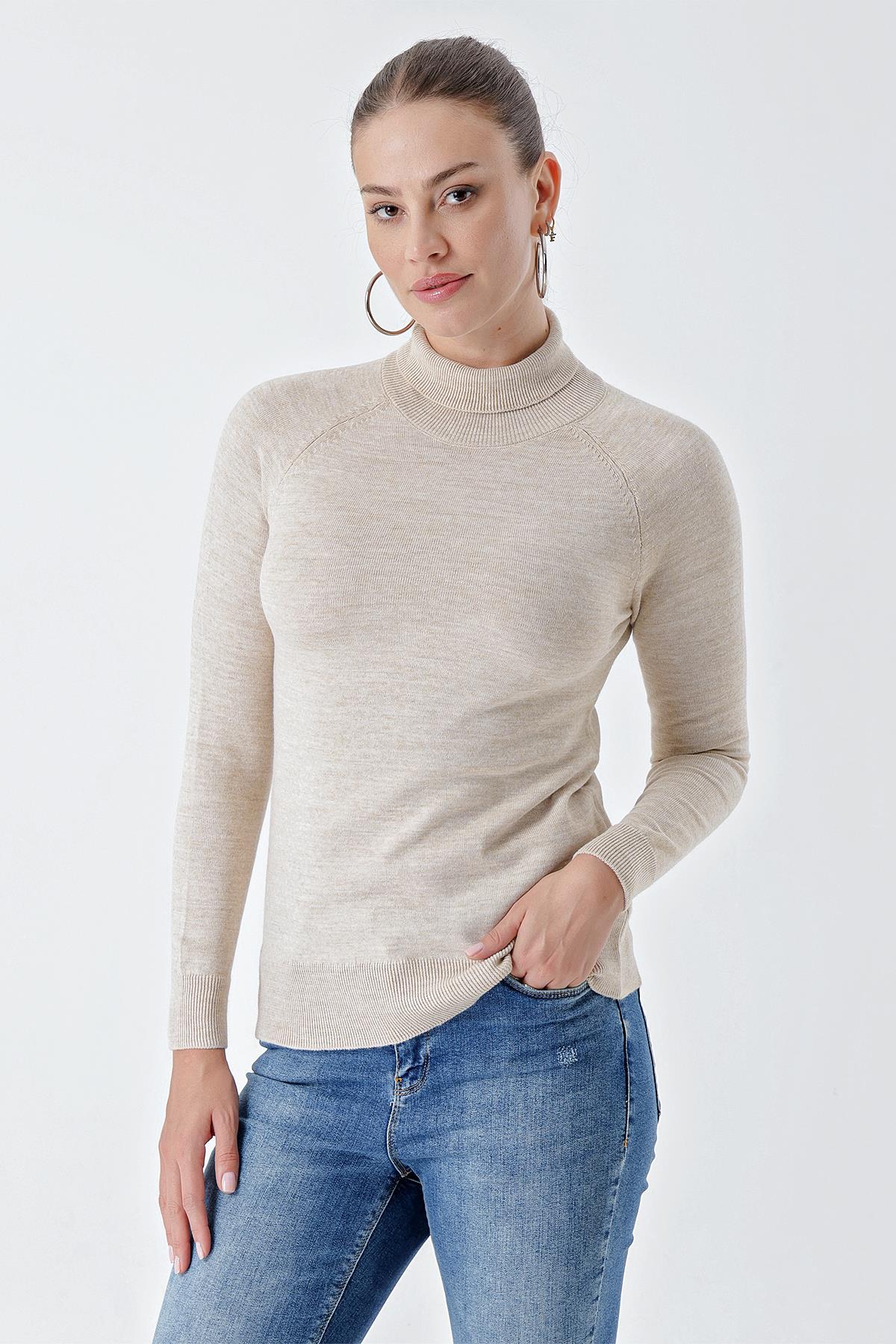 Chuba Kadın Tam Balıkçı Yaka Basic Triko Kazak Bej 24W102