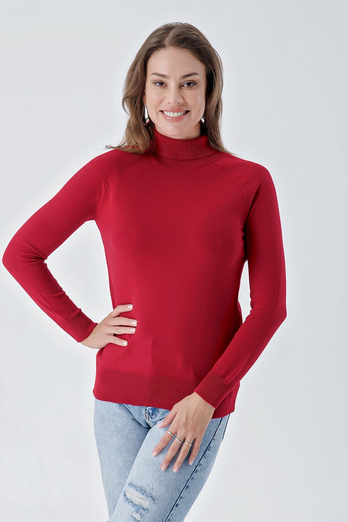 Chuba Kadın Tam Balıkçı Yaka Basic Triko Kazak Kırmızı 24W102