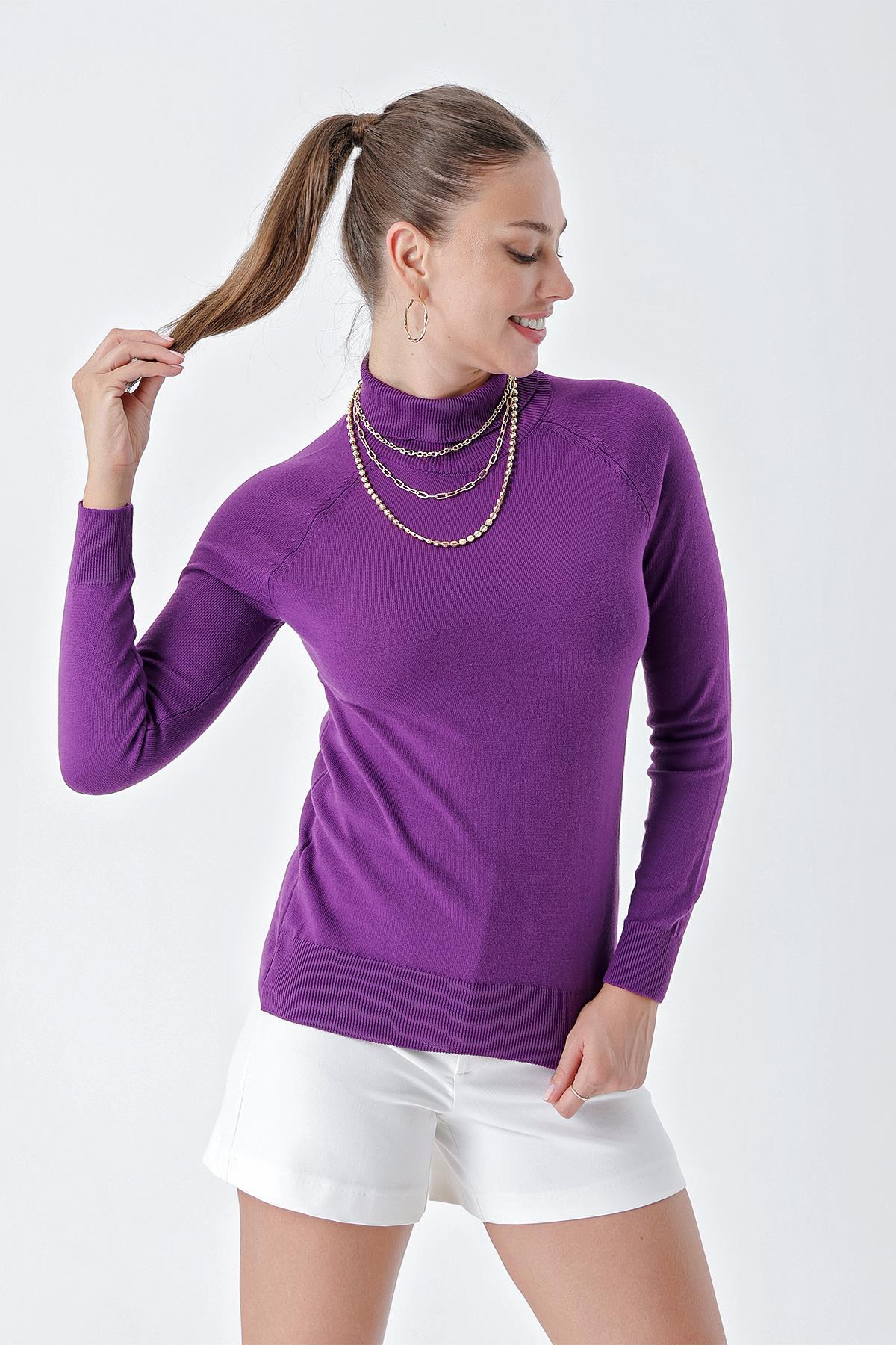 Chuba Kadın Tam Balıkçı Yaka Basic Triko Kazak Mor 24W102