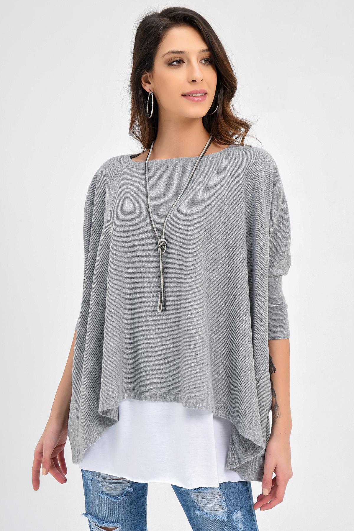Chuba Kadın Gri Triko Panço 20W104