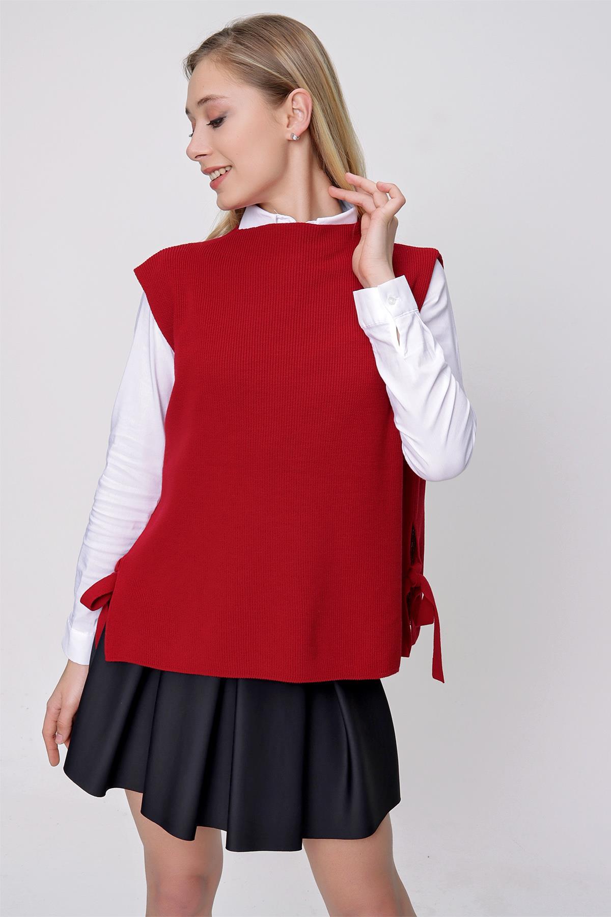 Chuba Kadın Yandan Bağlamalı Triko Süveter Kırmızı 22WK252