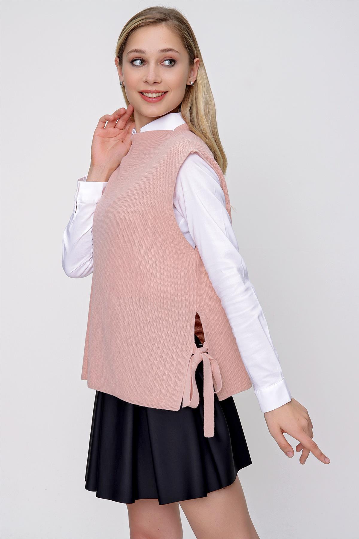 Chuba Kadın Yandan Bağlamalı Triko Süveter Pudra 22WK252