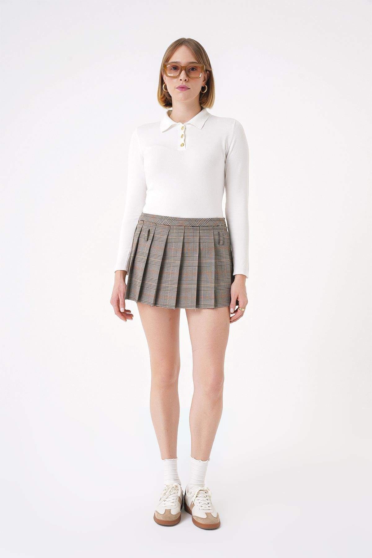 Chuba Kadın Yumuşak Dokulu Gold Düğmeli Polo Yaka Triko Kazak Beyaz 25W3012