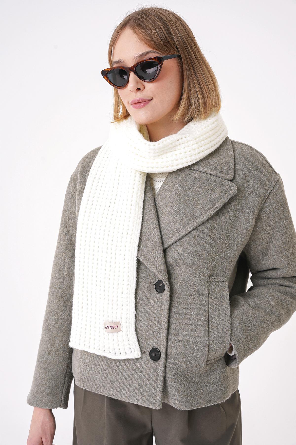 Chuba Kadın Yumuşak Dokulu Örgü Desenli Triko Atkı Beyaz 25W5003