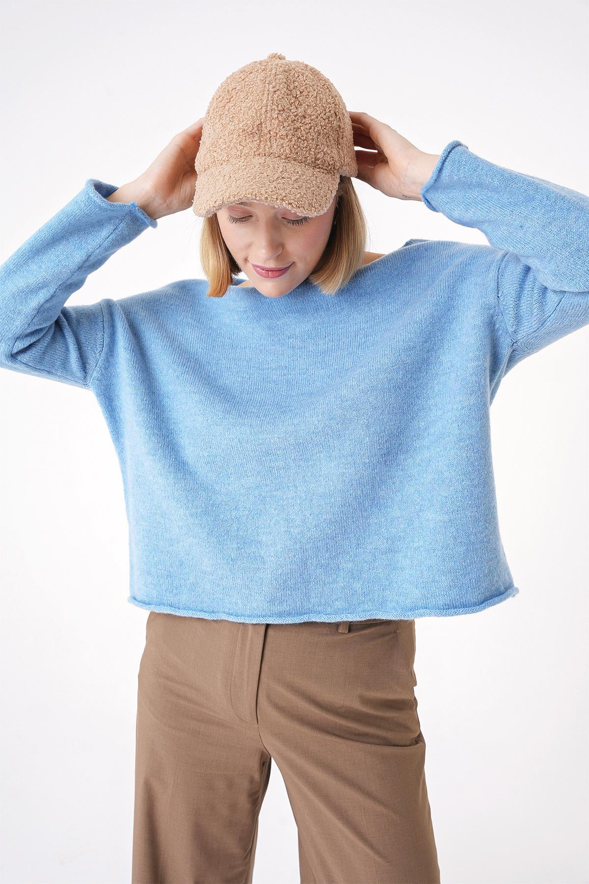 Chuba Kadın Yumuşak Dokulu Rahat Kalıp Kayık Yaka Triko Kazak  Mavi 25W3015